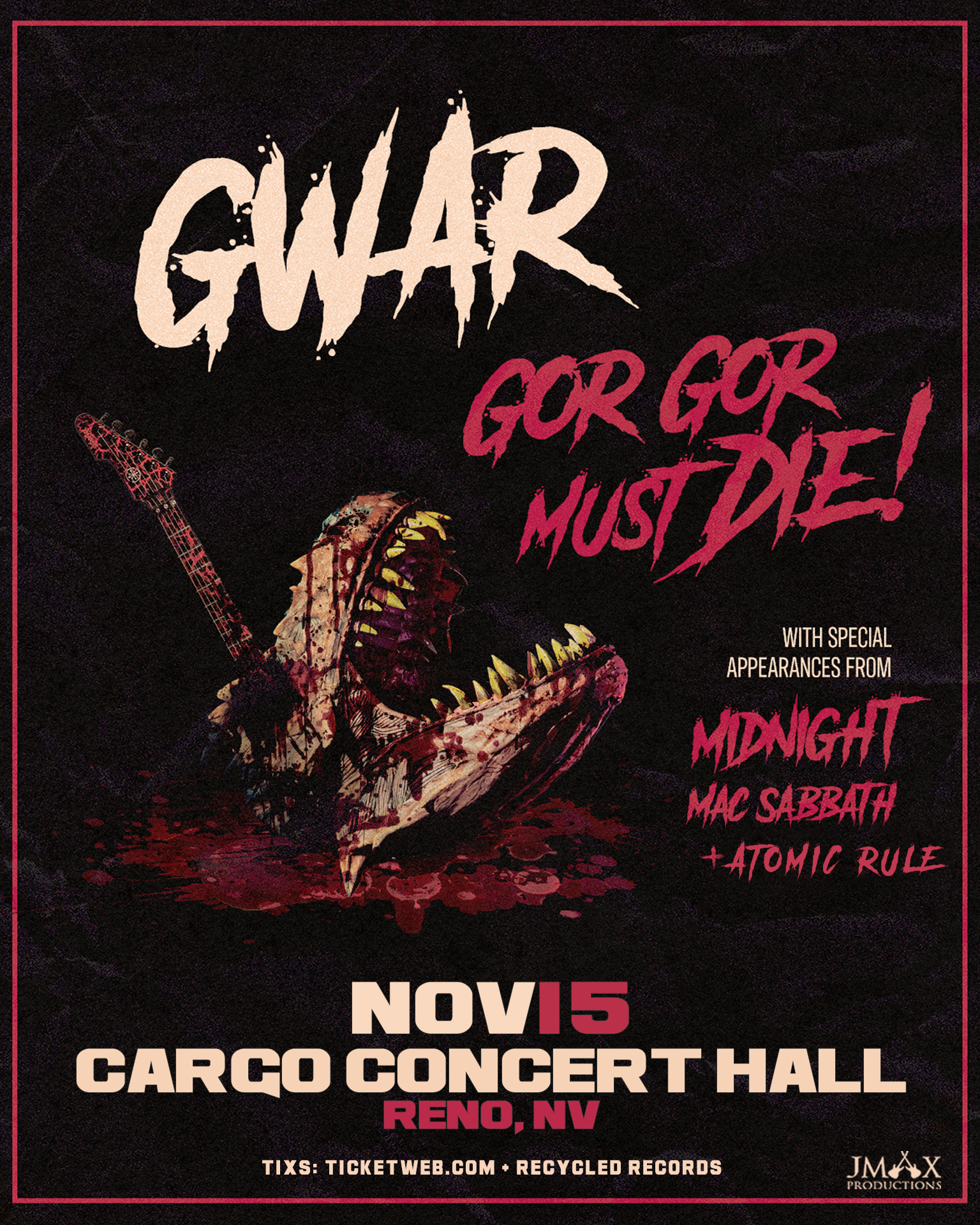 JMAX and Cargo Concert Hall present GWAR supported by Midnight, Mac Sabbath, and Atomic Rule.