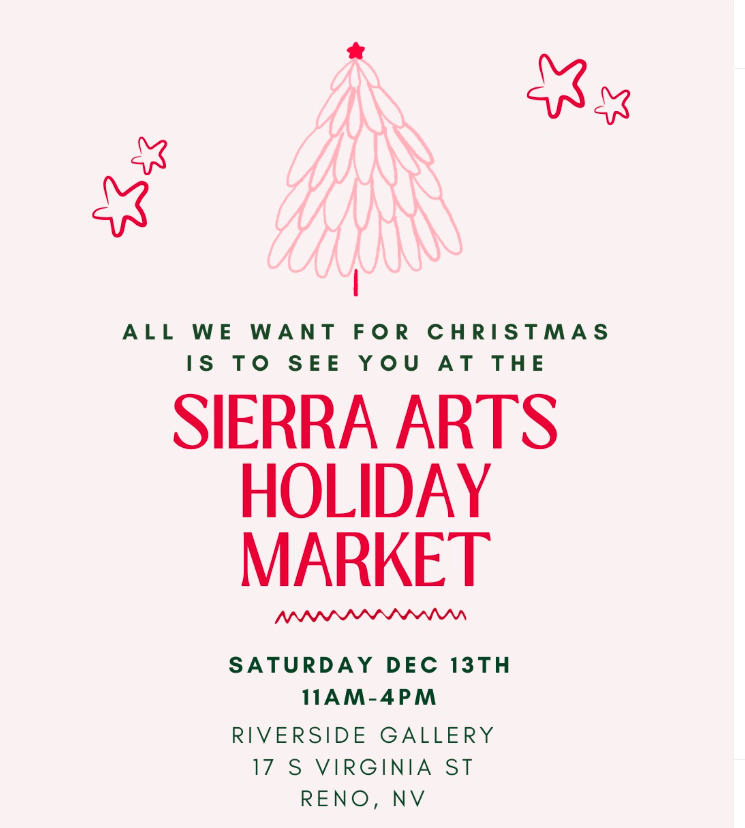 Dec 13 11:00 am - 4:00 pm Sierra Arts Holiday Market: Riverside Gallery Riverside Gallery 17 S Virginia Street, Reno Event Details Get Directions