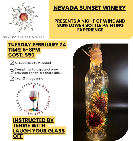 Wine & Sunflower Bottle Painting: Nevada Sunset Winery